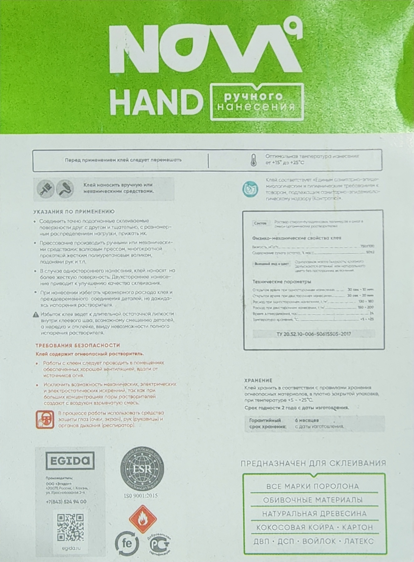 Отсутствие запаха — Отсутствие сильного запаха при нанесении. Готовый клеевый шов запаха не имеет.